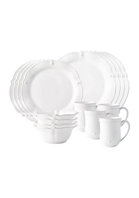 Adorned with a sprinkling of berries and new fluted silhoutte, this 16 piece set in Whitewash provides service for four and includes 4 dinner plates, dessert/salad plates, cereal/ice cream bowls and mugs.