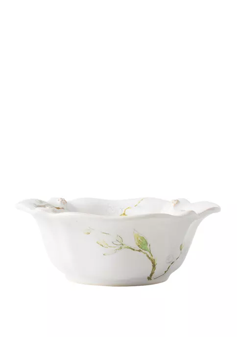 Juliska’s new Jasmine floral transports you to a canopy of delicate blooms as if looking up above. Adorning Juliska’s berry and thread motif with a whimsically scalloped edge, this cereal or ice cream bowl is perfect for piling your clusters of granola goodness or ice cream sundae accouterments to the very rim.