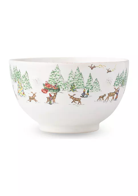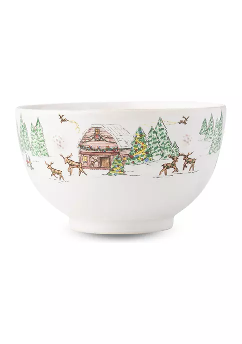 The mythical, folkloric world of the North Pole is hand illustrated atop iconic Berry and Thread shapes in this holiday collection. Find the elves’ village and toy workshop depicted around this chic bowl will become a staple for all your seasonal soups and warm, tasty desserts.