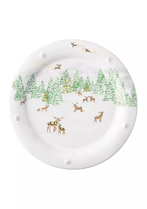 Transport your table to the magical world of the North Pole, where a herd of friendly reindeer awaits their yearly Christmas voyage. This dinner plate is adorned with a sprinkling of Juliska’s iconic berries around the rim and is perfectly suited to serves as a perfect layering plate for all your Holiday meals.