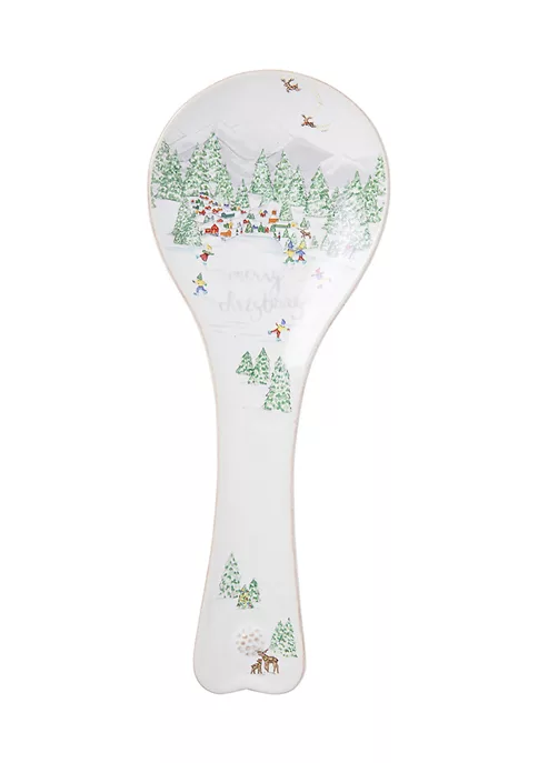 From swirling marshmallows into a mug of hot chocolate or tending to a bubbling pot, this delightful spoon rest will keep your countertops clean of drips and dribbles so you can use your time to tend to what’s important. Featuring illustrations of an interpretation of the magical world of the North Pole, this piece will help you deck the halls – and your house – for the Holiday season.