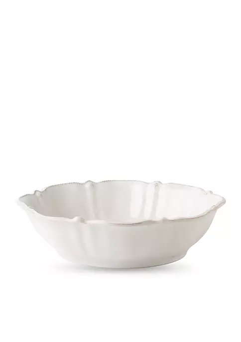 With the subtly ruffled elegance of an unfurled rose, the wide basin of this large bowl makes everything it contains look lovely, from summer salads to pixie tangerines.