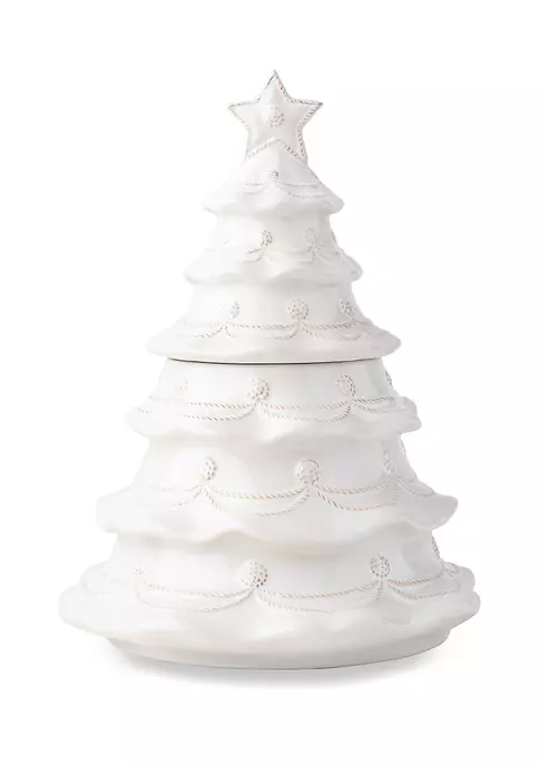 Deck the Halls with this! This cheerful Berry & Thread Christmas Tree cookie jar is a delightful statement piece all holiday season! Fill it with delectable homemade goodies to delight your loved ones: cookies, candies, biscotti, and more! Handcrafted ceramic two-piece Christmas tree is bedecked with Juliska’s signature Berry and Thread motif, makes a fantastic gift, and is a must-have for the Berry and Thread Collector.
