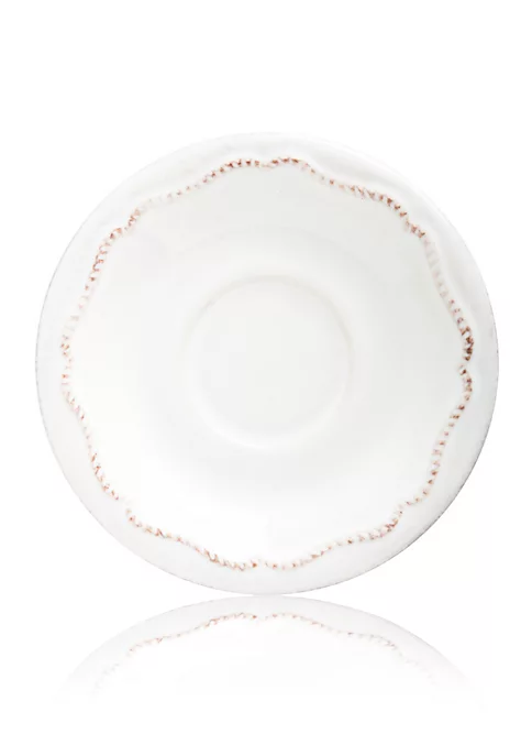 A sleek silhouette is subtly embellished with a threaded border in a scalloped pattern.