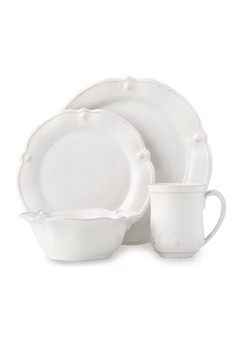 Adorned with a sprinkling of berries and a new fluted silhouette, this four-piece setting includes a dinner plate, dessert/salad plate, cereal/ice cream bowl, and cofftea cup.
