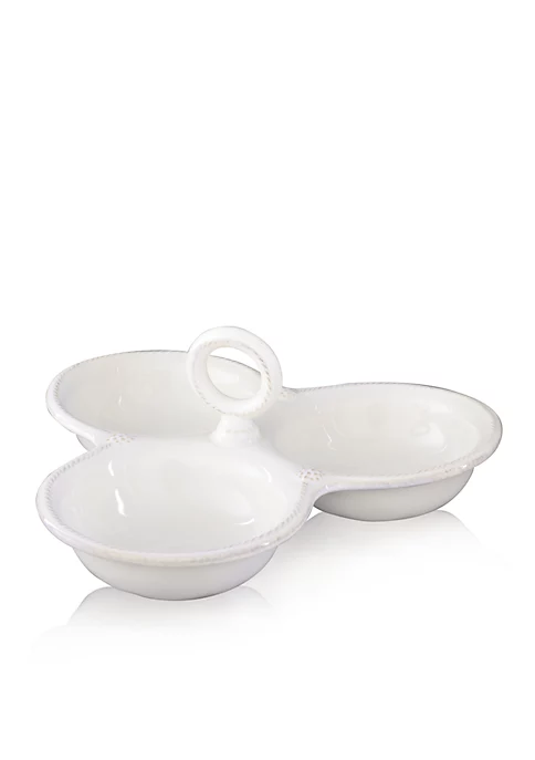 A joyful trio of ceramic serving bowls are united by a ring-shaped handle that makes transporting nibbles a breeze! From cocktail mixes on the veranda to homemade preserves for tea, this triple server will give any party a boost.