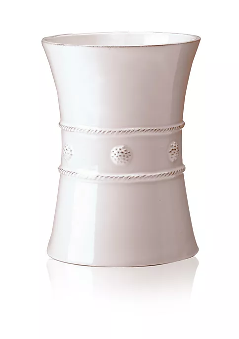 Simply chic housing for your spatulas and spoons, this spacious utensil crock boasts a simple sash of threads and berries at the midline, making it an elegant and efficient addition to your kitchen cache. Its versatile shape doubles beautifully as a vase, or store it in your freezer, chill, and use as a white wine cooler.