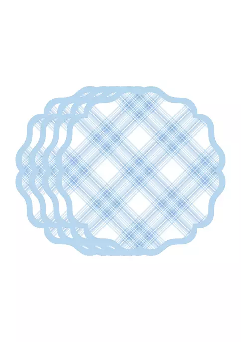 Durability meets design with this set of 4 cork backed placemats. Featuring our fresh chambray blue Tartan print, these will set a fabulous foundation to any setting and can stay on your table from breakfast straight through the end of the day – simply wipe clean with a damp cloth as needed!
