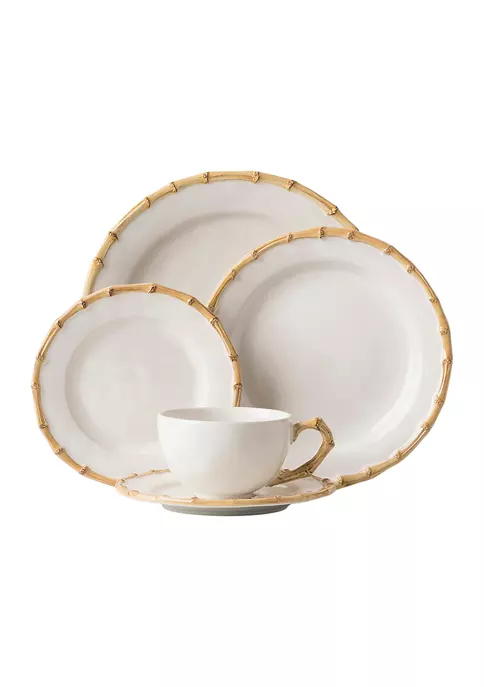 From the Classic Bamboo Collection – Bringing a sense of naturalistic glamour to your dinner table, the Bamboo five-piece setting contains a dinner plate, dessert/salad plate, side/cocktail plate, tea/coffee cup, and saucer.