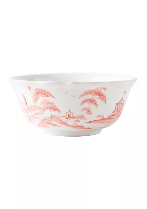 From our Country Estate Collection in irresistibly pretty pink- Our bowls serve as perfect vessels for the morning cereal or your proverbial cherries. Life is lovely when you have a bowlful. Featuring: Hen House, Tea Party Tent, Apple Orchard, and Rose Arbor.