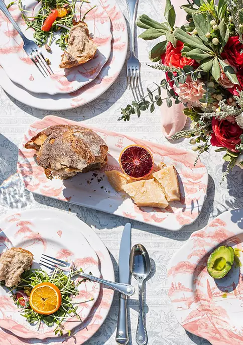 From our Country Estate Collection n irresistibly pretty pink- – “If music be the food of love, play on…” Our lovely tray illustrates the perfect ingredients for a bit of romance: fondness of dancing, a little moonlight, and a fabulous garden party. Lavish it with our Amalia Champagne flutes filled to the brim with golden bubbly and pass it along. Featuring: Garden Party, Rose Arbor, and Hen House.