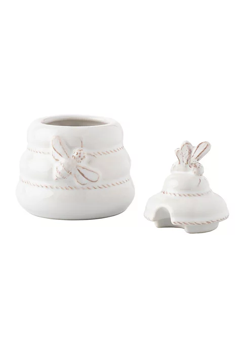 From breakfast to tea time, this beautifully sculpted ceramic hive gives a home to your favorite honey – with a lid and wooden spoon for serving.