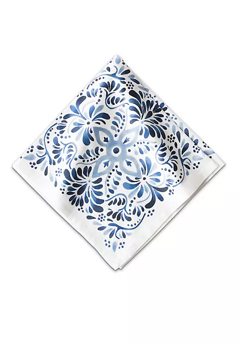 A journey to the sandy Iberian coast inspired this Iberian Journey motif. This napkin is reinterpreted with this region’s stunning cobalt blue painted tiles onto a crisp white backdrop.