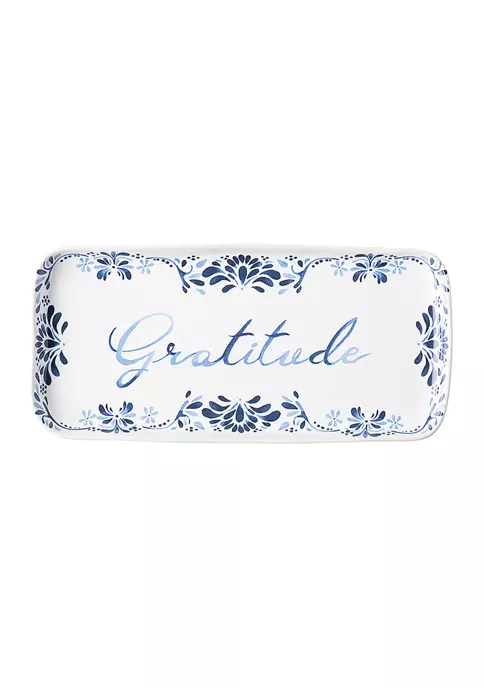 A sweet declaration of gratitude, which Juliska believes to be the secret to happiness, embellishes this rectangular gift tray. Use this as a catchall on your kitchen counter or dresser to serve as a daily reminder, or send to family and friends with a sweet note to let them know how much you appreciate them.