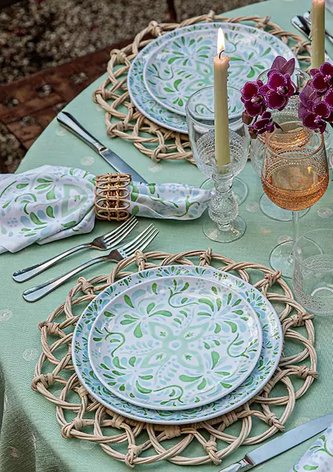 The beguiling pattern of this side plate was inspired by the intricately painted tiles we found on an escapade to the Iberian Coast. Made of sturdy melamine and featuring a verdant palette of soft sage and sky blue hues that are both refreshing and soothing – you will want to use this gorgeous green plate everywhere, indoors and out.