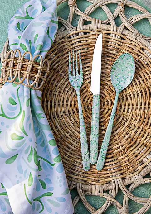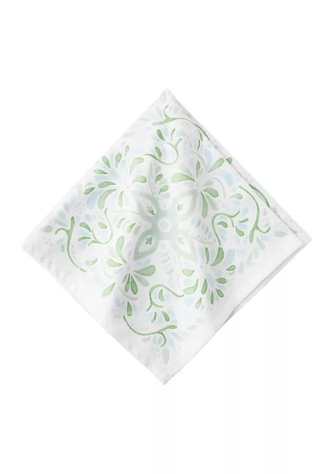 Inspired by the intricately painted tiles we found on an escapade to the Iberian Coast and featuring a palette of soft sage and sky-blue hues, this napkin will be a welcome addition to any tablescape.