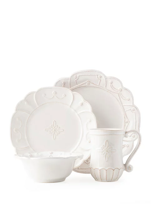 From the Jardins du Monde Collection by Juliska, this 4-piece place setting is nobly trimmed and hedged with elements of classical symmetry from four enchanting gardens. A unifying plate adds a dash of elegant grandeur to any table. The 4-piece setting includes: dinner plate, dessert/salad plate, cereal bowl, and mug.
