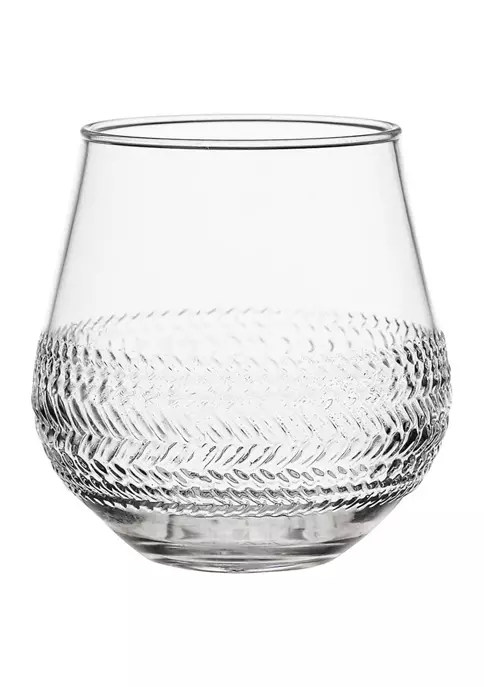From our Al Fresco Collection – A study in contrasts, our Old World motif of French basket weaving is classic, yet blithely effortless, in modern acrylic. Stemless for carrying vintages and cocktails outdoors, this versatile vessel allows adventurous entertainers to carpe diem! and set a gorgeous scene, absolutely anywhere.