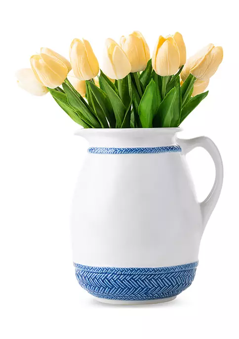 Adorned with a ring of subtle Delft Blue rope detail, this versatile pitcher is perfect for tableside water service or a bouquet of your favorite fresh flowers.
