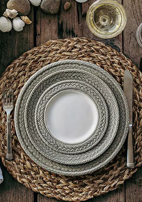 From our Le Panier Collection – Inspired by the French basket weave often found in equestrian and nautical traditions; the textured woven border is beautifully hand-painted in a neutral grey wash.