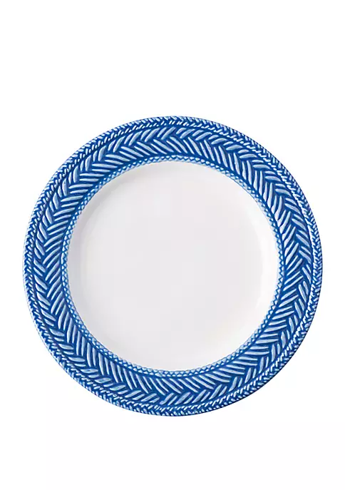 Inspired by the French basket weave often found in equestrian and nautical traditions, the border of this Juliska side/cocktail plate is beautifully hand-painted in a windswept delft blue.