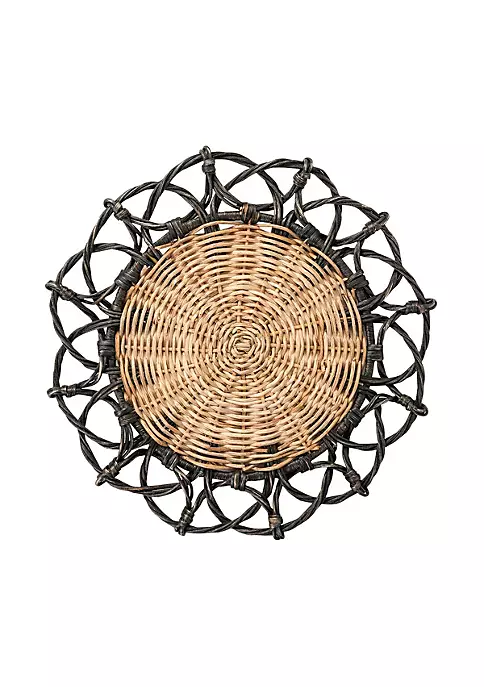 Warm and welcoming natural rattan is encircled within an eye-catching woven border in black for a dose of chic artistry that works just as well for garden parties as it does around the dinner table.