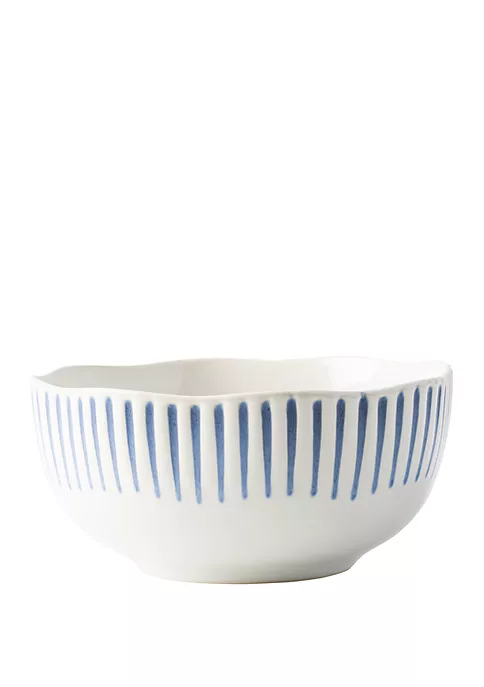 Equally stunning and simplistic, radiant stripes in breezy shades of blue adorn this cereal/ice cream bowl by Juliska.