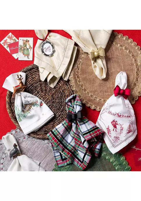 This black tuxedo-inspired napkin ring was designed to make a debonair statement in your dΓ©cor. Handsewn with rings wrapped in black velvet ribbon, these handsome bows can dress up any table for a look that is tailored and irresistibly elegant.