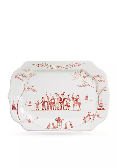 Bedecked with the sweet verse from a beloved carol, this gorgeously painted scene in ruby upon a snowy white background makes a darling gift (especially when piled high with homemade goodies) or for presenting cookies and carrots alongside a tumbler of milk on Christmas Eve.