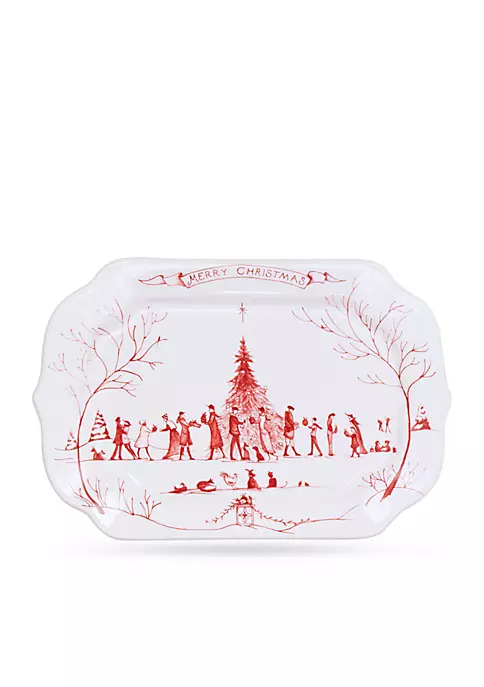 The banner on this enchanting tray says “Merry Christmas” above an illustration of some merry folk gathered in the magical spirit of giving around a Christmas tree. In the spirit of the season, it makes a joyful gift, indeed.
